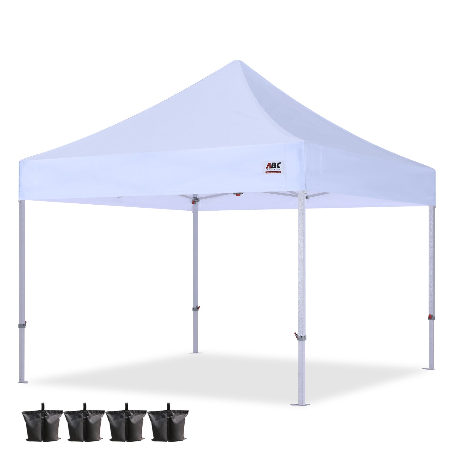 Package Includes (10x10/10x15) 1x Steel Frame, 1x Canopy Top, 1x Wheeled Bag, 4x Sand Bags, 4x Ropes & Stakes